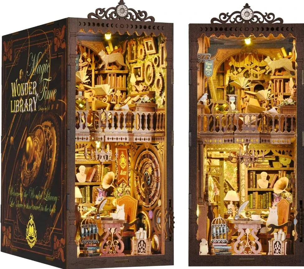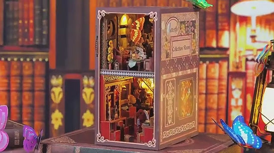 Book Nook – Bygg magiska världar är en kreativ DIY-hobby som hjälper dig att slappna av på riktigt. Du bygger en detaljrik minivärld i trä, bit för bit. Fokus hamnar på händerna och andetagen saktar ner. När du är klar lyser ett varmt LED-ljus upp din skapelse och ger en mysig känsla. Det är inte bara ett projekt – det är en paus från stress, skärmar och krav. En kreativt stund en trevlig dekoration i bokhyllan.